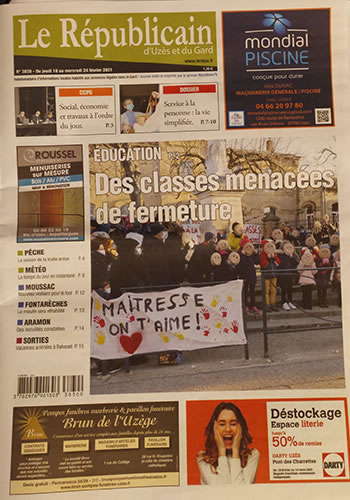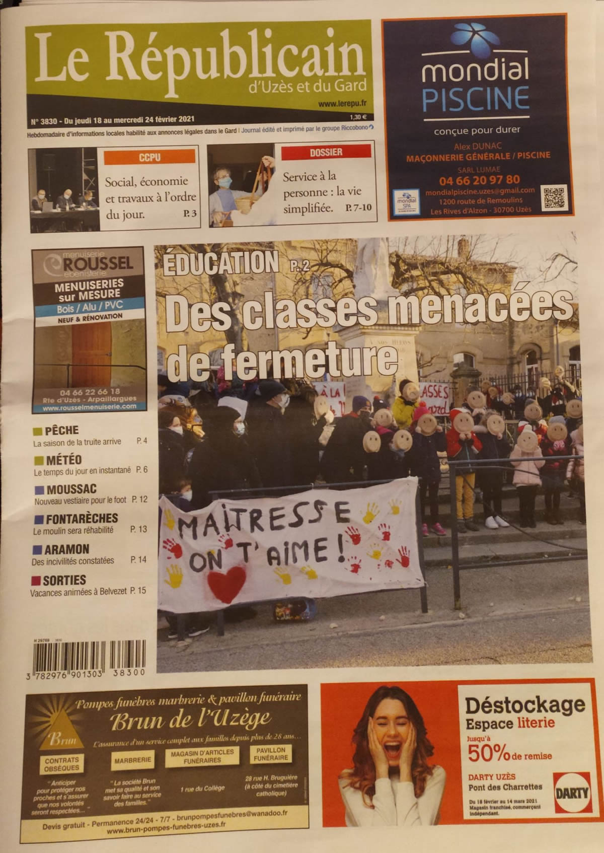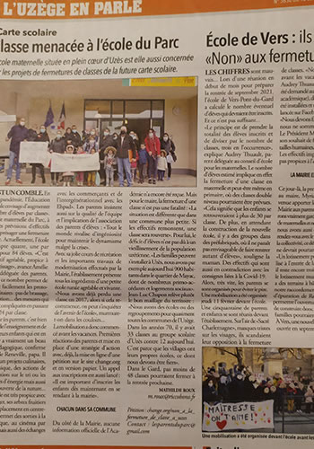 - Midi Libre : Mobilisation contre la fermeture d’une classe, Gard, Molières-sur-Cèze