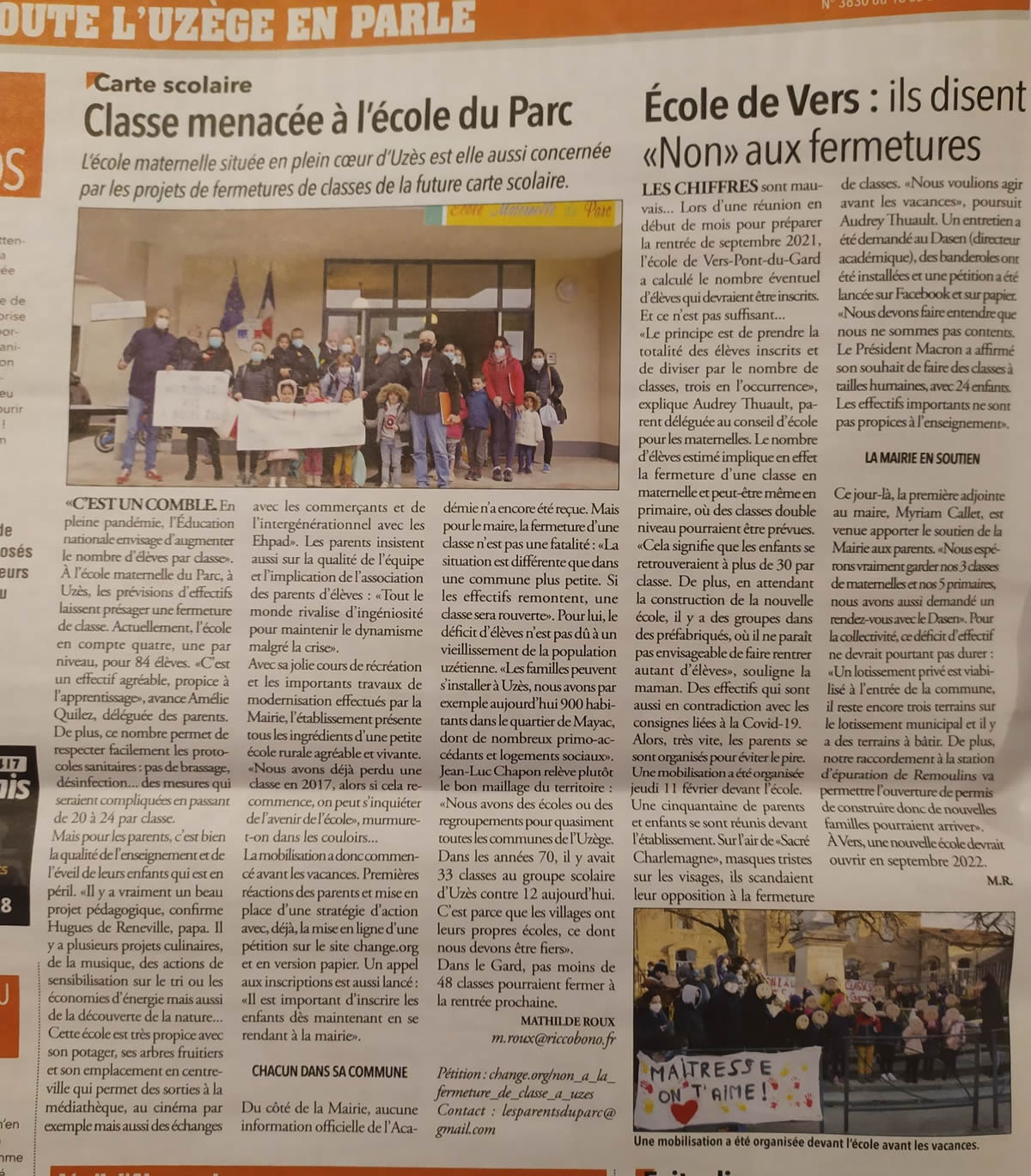 - Objectif Gard : UZÈS Les parents d’élèves mobilisés contre la fermeture d’une classe à l’école du Parc